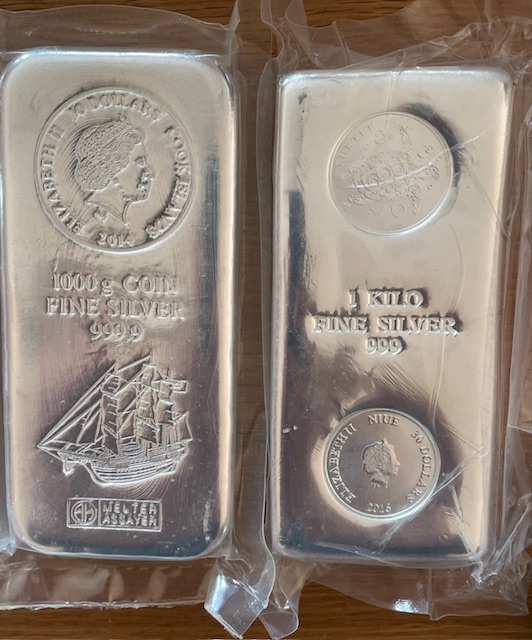 1 Kilogramm / 1000 Gramm Silber für Anleger: verschiedene Kilo Silber Barren / ggf. angelaufen ( diff.besteuert nach §25a UStG )
