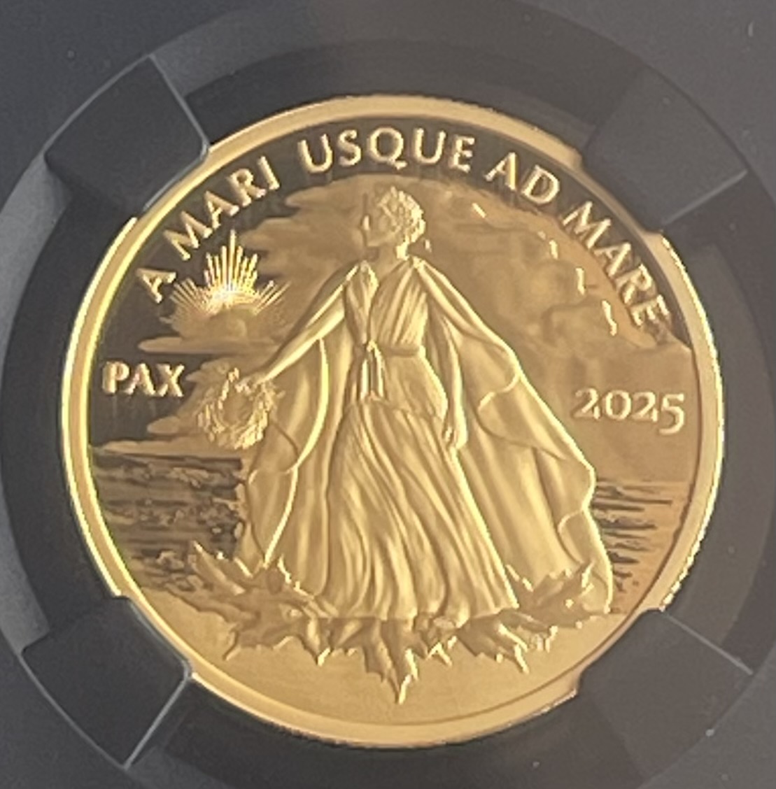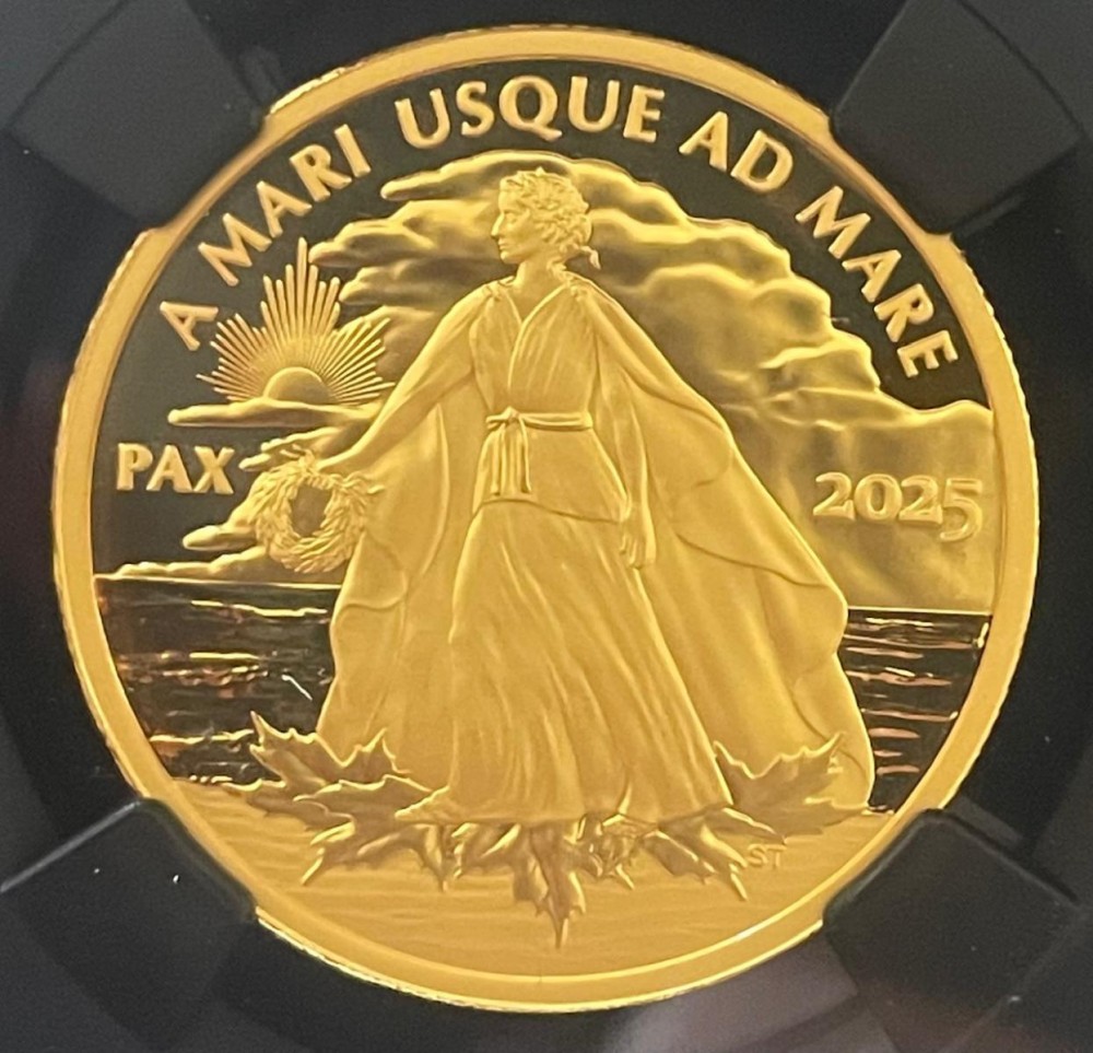 1 oz Gold PF70 First Day Canada Proof Peace Dollar 2025 in Slabholder/Box inkl. COA - Grading von NGC