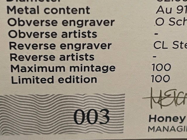 1 oz PF70 im Slab Gold Krügerrand " Buffalo / Büffel " 2023 inkl. max. 100 Stück - entnommen aus einem Big Five Satz - inkl. Leerbox des Satzes aus dem die Unze entnommen ist - COA NUMMER 3 von 100