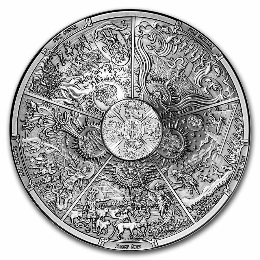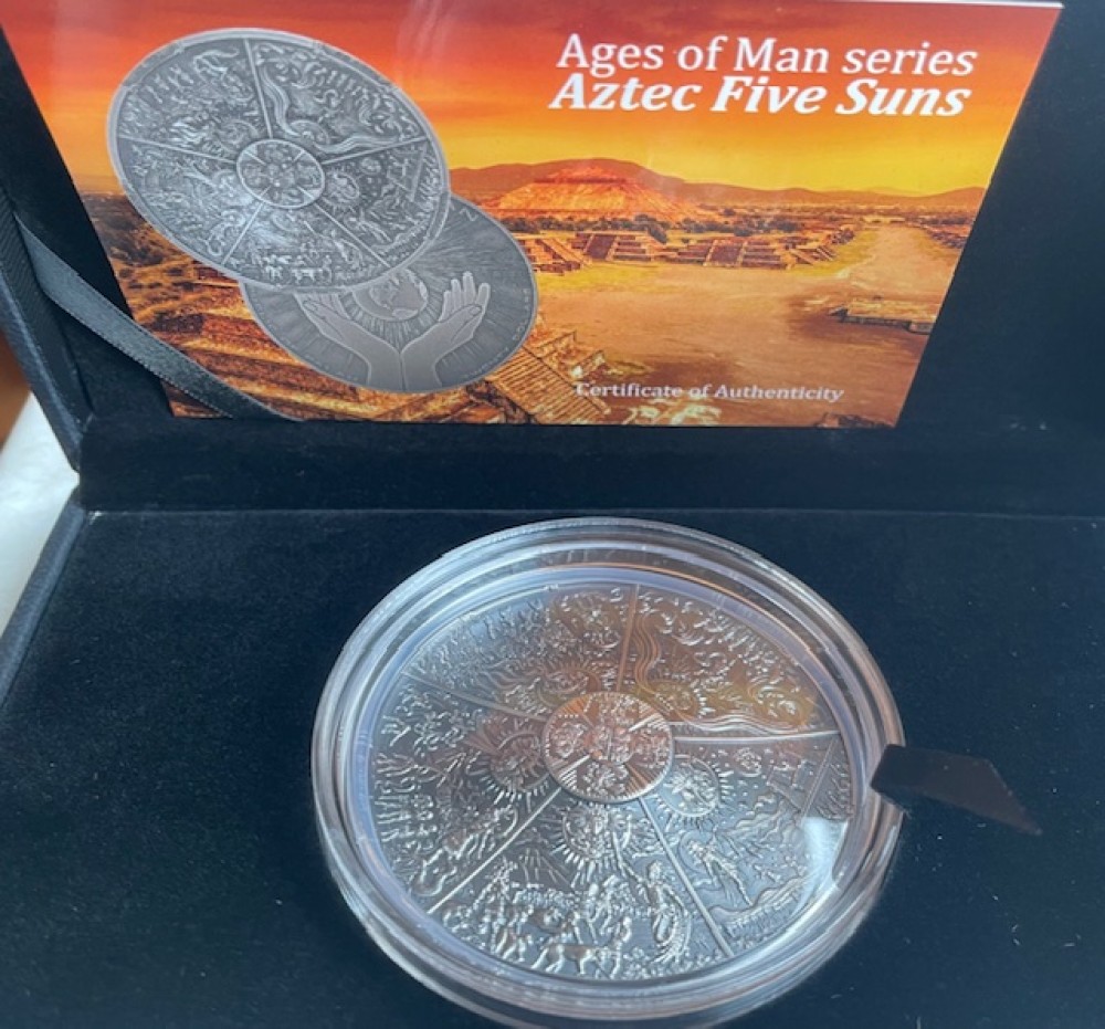 3 oz Silber Palau Ultra High Relief Smartminting in Antique finish " AZTEC FIVE SUNS " Ages of Man Creation of World inkl. Box/COA - max 333