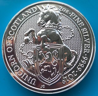 2 oz Silber Royal Mint / United Kingdom " 2018 Unicorn of Scotland " ( diff.besteuert nach §25a UStG )